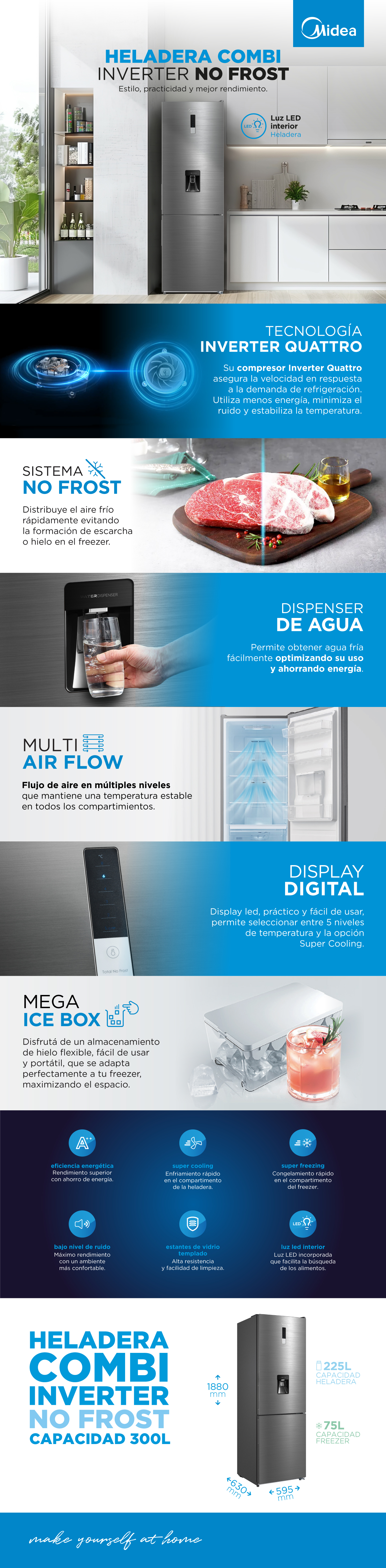HELADERA INVERTER MIDEA COMBI 300 LTS.