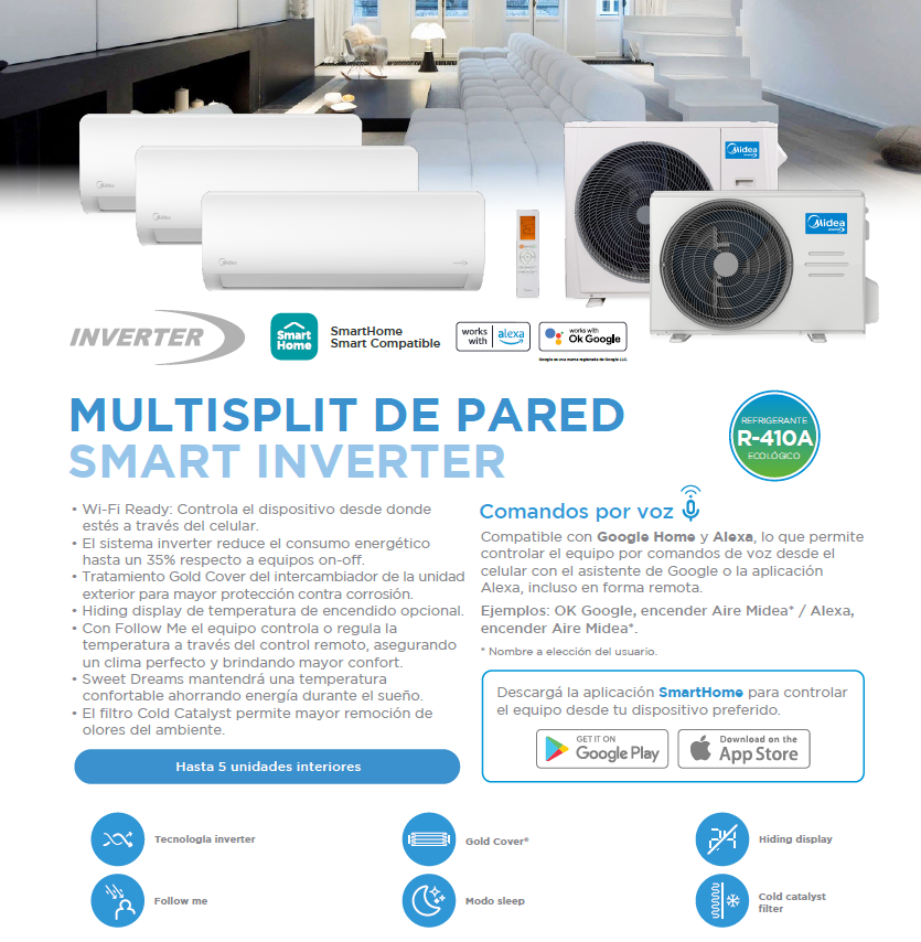 1 UNIDAD MIDEA INVERTER SMART AIRE ACOND. MULTISPLIT UN. INTERIOR PARED 5280F